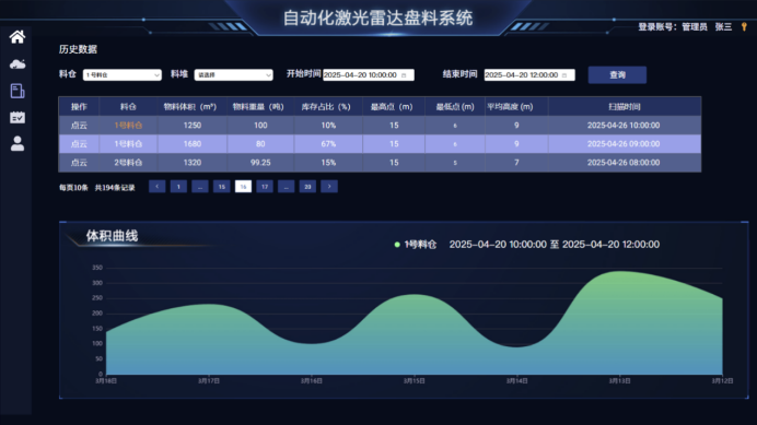 3.报表生成: 结合物料密度,系统自动将体积转化为重量,并实时推送到管理主管的手机或电脑端。